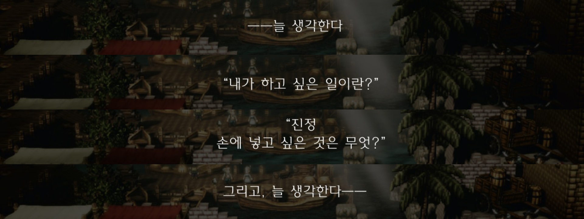 이전 글 참고https://wkqtkdtlr.tistory.com/122 (트레사 1장 1편)처음보는 큰 배가 리플타이드로 들어왔다. 흥미를 느끼는 트레사 배가 있는 곳으로 간다.???이런 이런, 우울한 마을이군하지만 좋은 냄새가