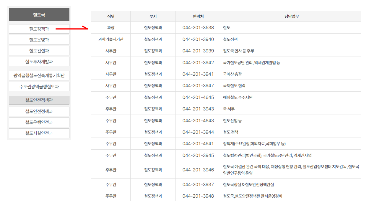 국토교통부를 예로 들어보자. 국토교통부는 「국토교통부와 그 소속기관 직제」를 통해 그 하위 조직을 구성하고 있다. 이 중 철도국의 경우