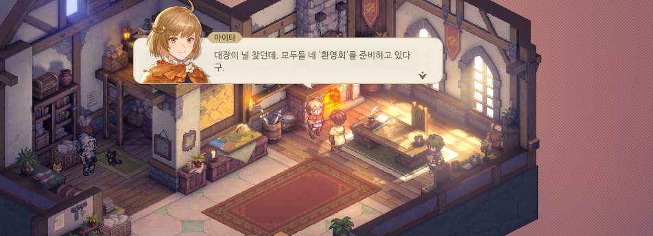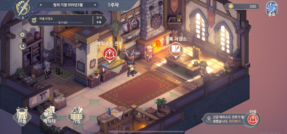 환영회와 관련된 에피소드가 발생했다는 알림이 뜬다. 일반적인 에피소드와 달리 긴급 에피소드는 빨간색 ! 로 표시해주며 보통 스토리와 관계된 에피소드이다. 진행하도록 하자.