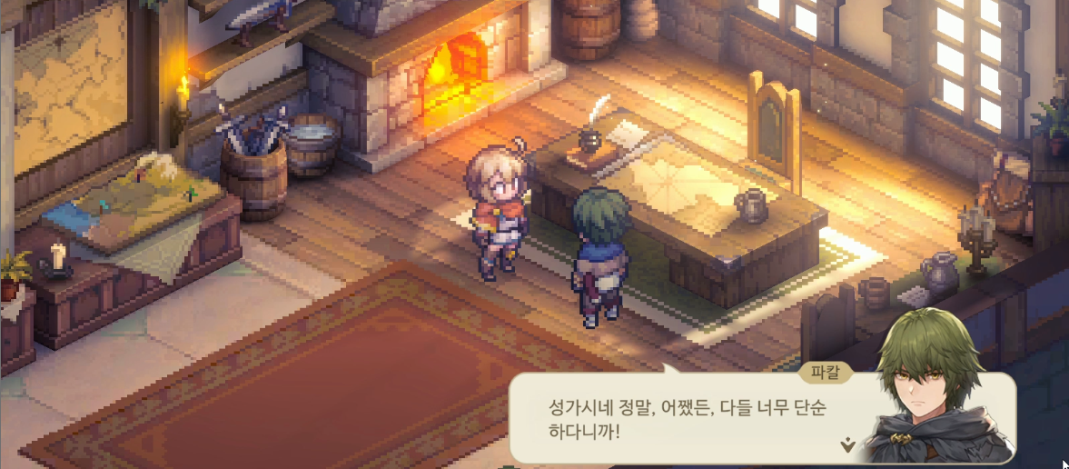 여관으로 가면 암흑의 빛을 떠나 스즈란 용병단으로 입단한 암흑 사제가 말을 걸어온다