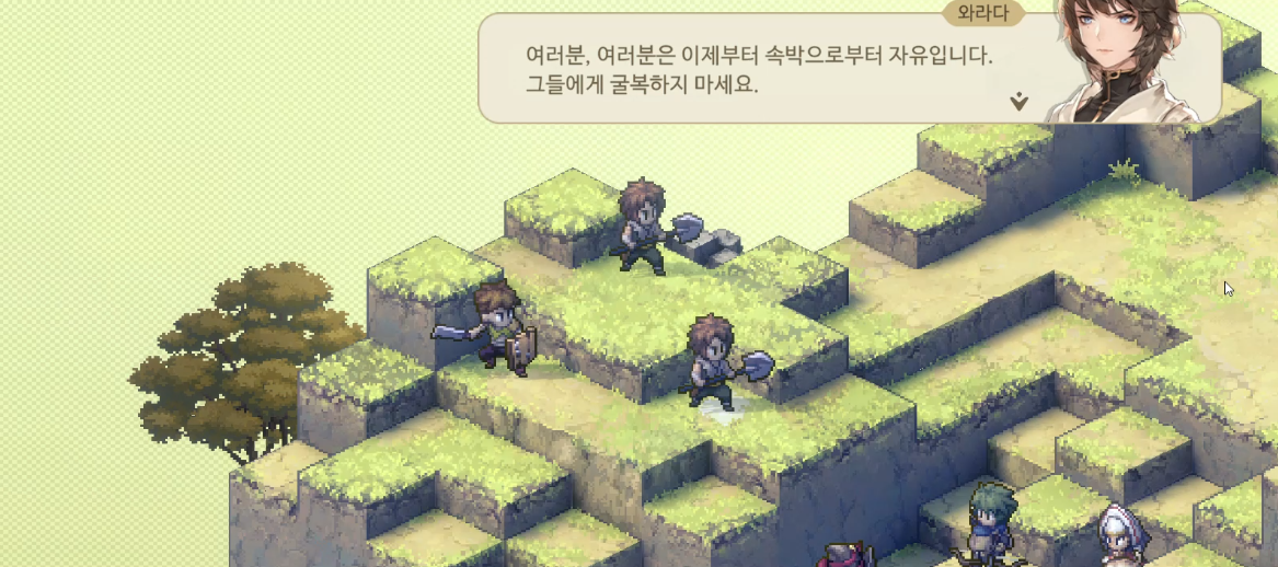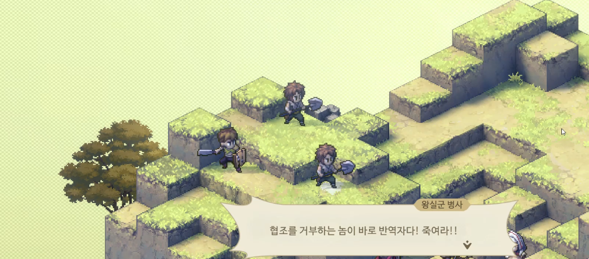 3턴 시작 전 왕실군 병사들이 폭도들을 꾸짖기 시작한다