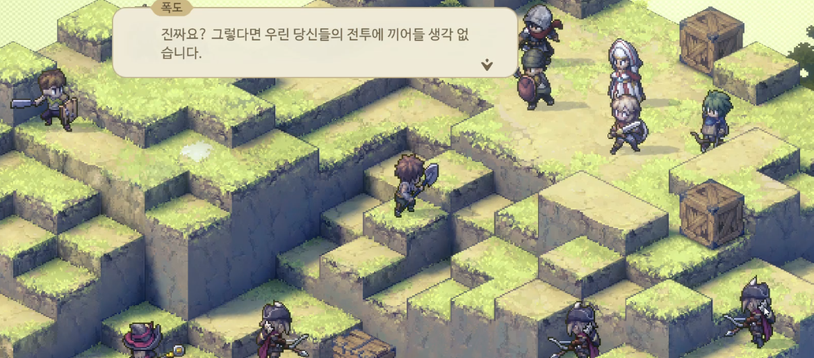폭도들도 결국은 일리아 국민일 뿐인데 전쟁에 얼마나 관심이 있겠는가, 자신이 먹고 사는 일이 가장 중요한 폭도들. 스즈란 용병단의 회유에 눈이 반짝인다