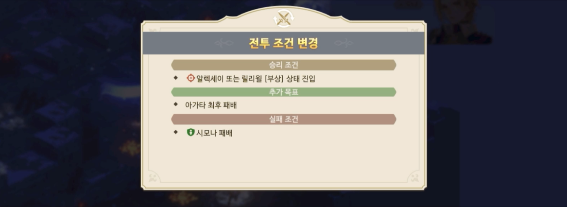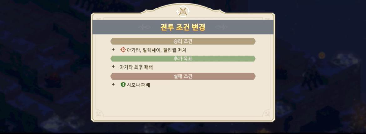 지금부터는 승리조건이 "아가타, 릴리윌, 알렉세이의 처치" 이다.