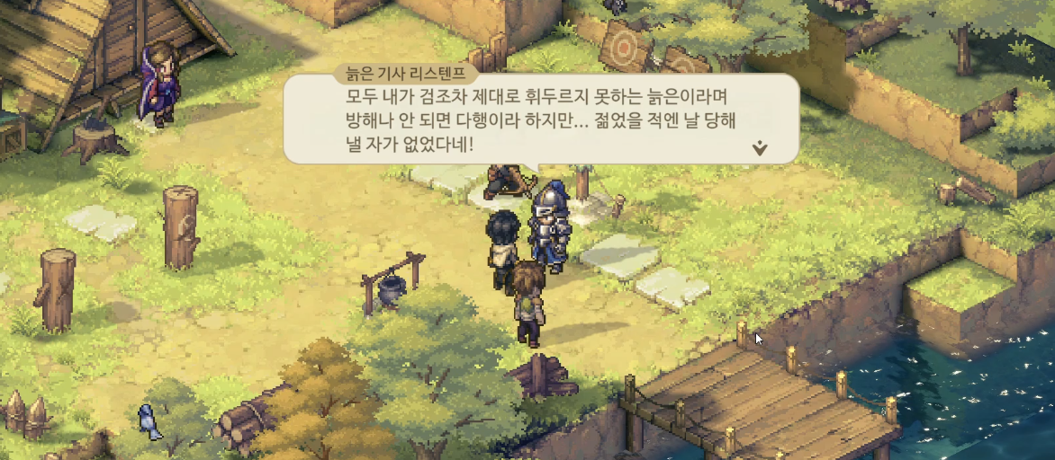 훈련장에는 나이가 많이 드신 기사 한 분이 있다. 말을 걸어보자