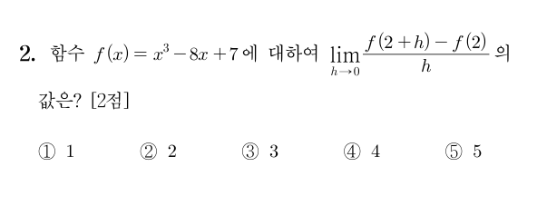 2025학년도 대학수학능력시험 수학영역 2번 (2025. 11. 14.)