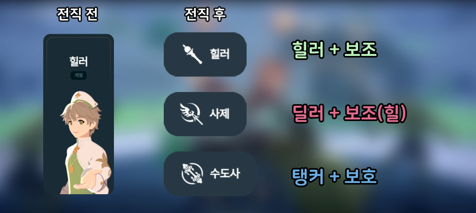 견습힐러는 힐러, 사제, 수도사로 전직이 가능하다